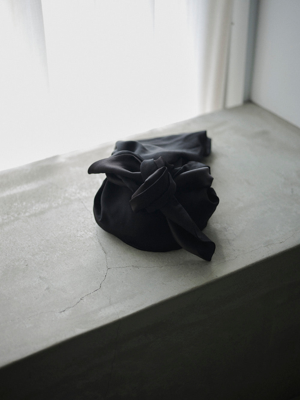頭の後方からナイトキャップを被り、左右の長い布部分を上で結びます。